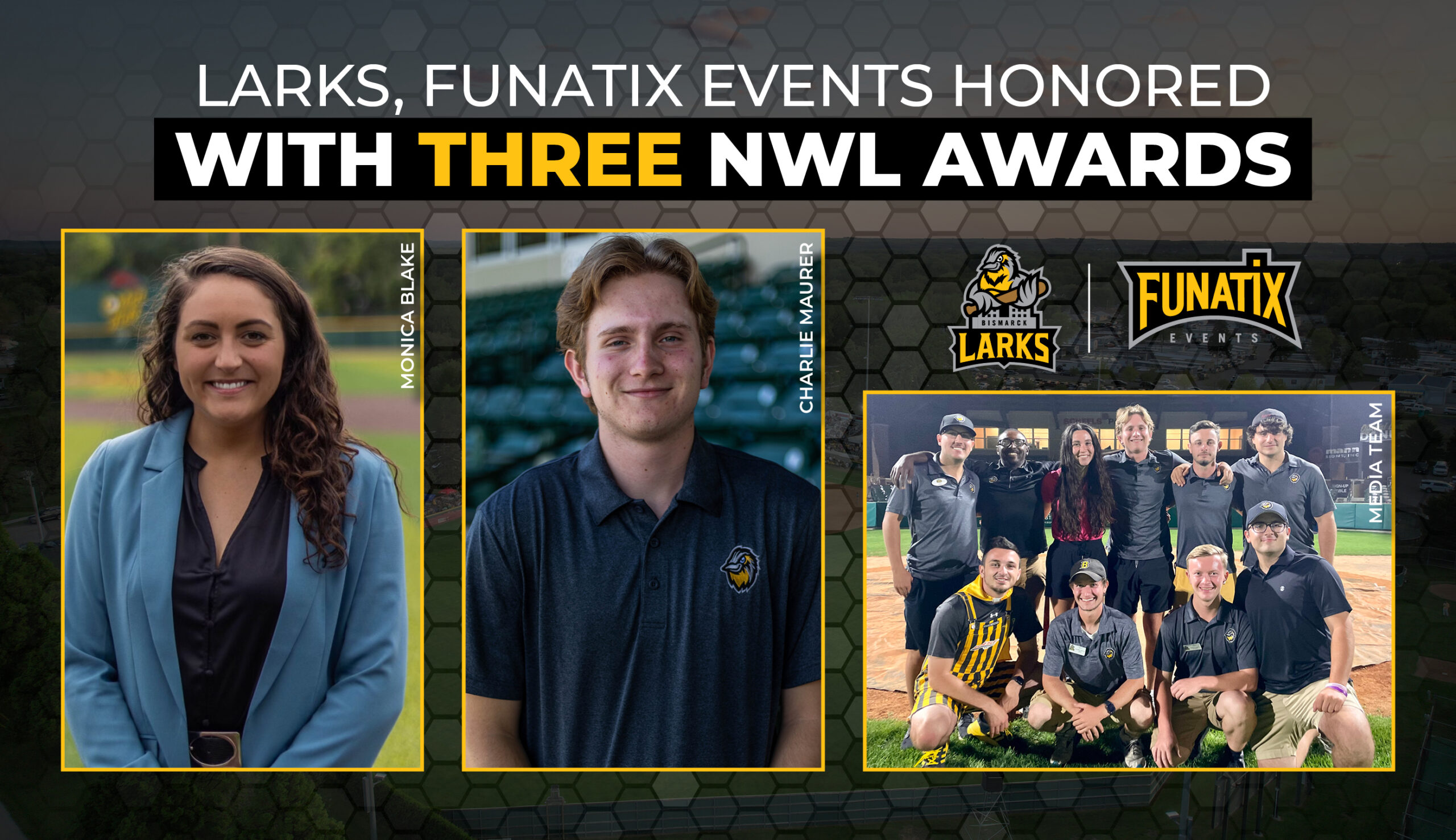 Monica Blake, the former General Manager of Funatix Events, was named the 2022 Northwoods League Most Valuable Employee. Charlie Maurer was recognized as the 2022 Northwoods League TV Announcer of the Year. Additionally, the Larks broadcast team, led by the organization’s media team, was recognized as the top Gameday Presentation in the Great Plains.