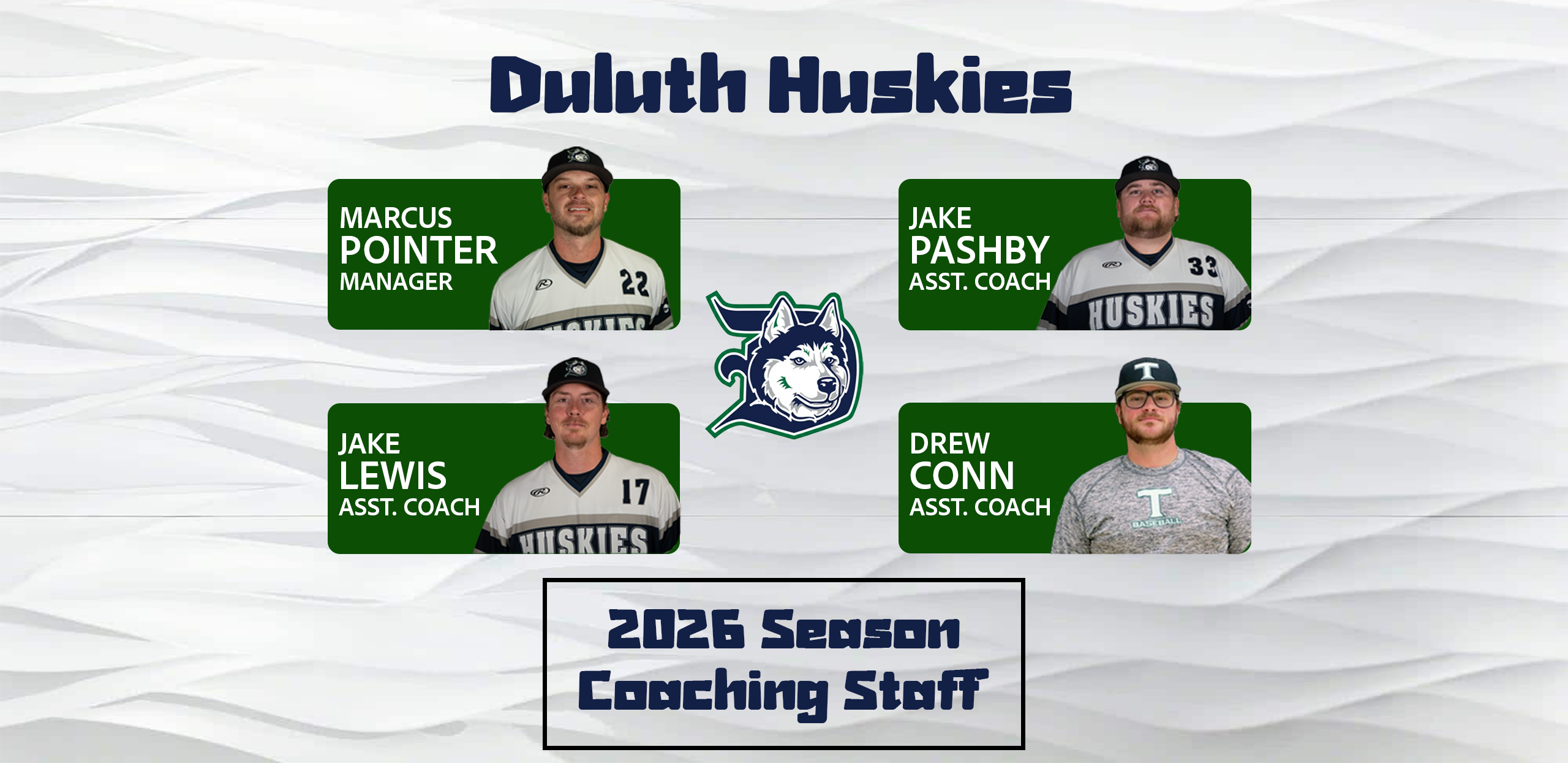 DULUTH, Minn. — January 5, 2026 — The Duluth Huskies are proud to announce their coaching staff for the 2026 season, led by Field Manager Marcus Pointer, returning for his eighth year with the organization and seventh as Field Manager.