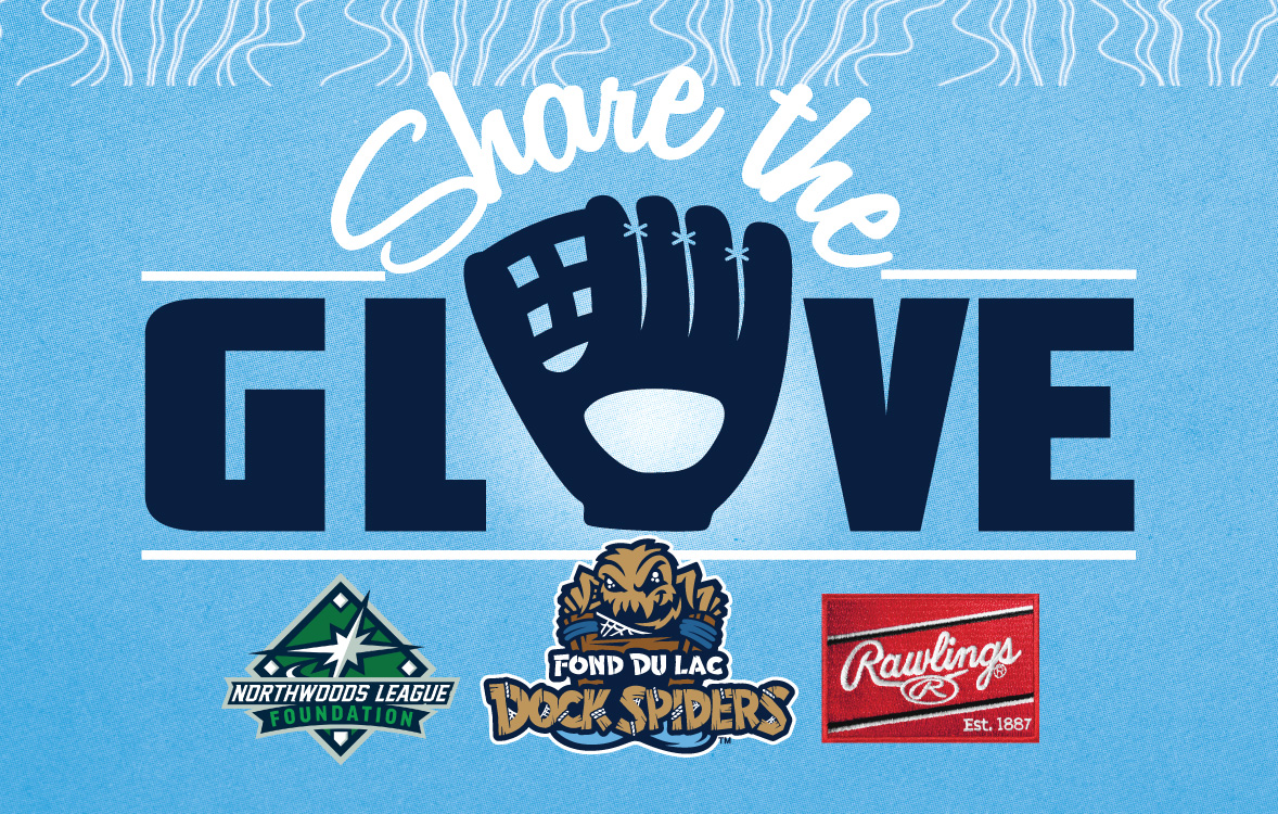 FOND DU LAC, WI – The Fond du Lac Dock Spiders are pleased to once again accept applications for the annual “Share the Glove” grant, courtesy of the Northwoods League Foundation. Entering its ninth year of the “Share the Glove” initiative, the Northwoods League Foundation has awarded annual grants of Rawlings baseball and softball equipment to youth organizations in communities in the league’s team markets.