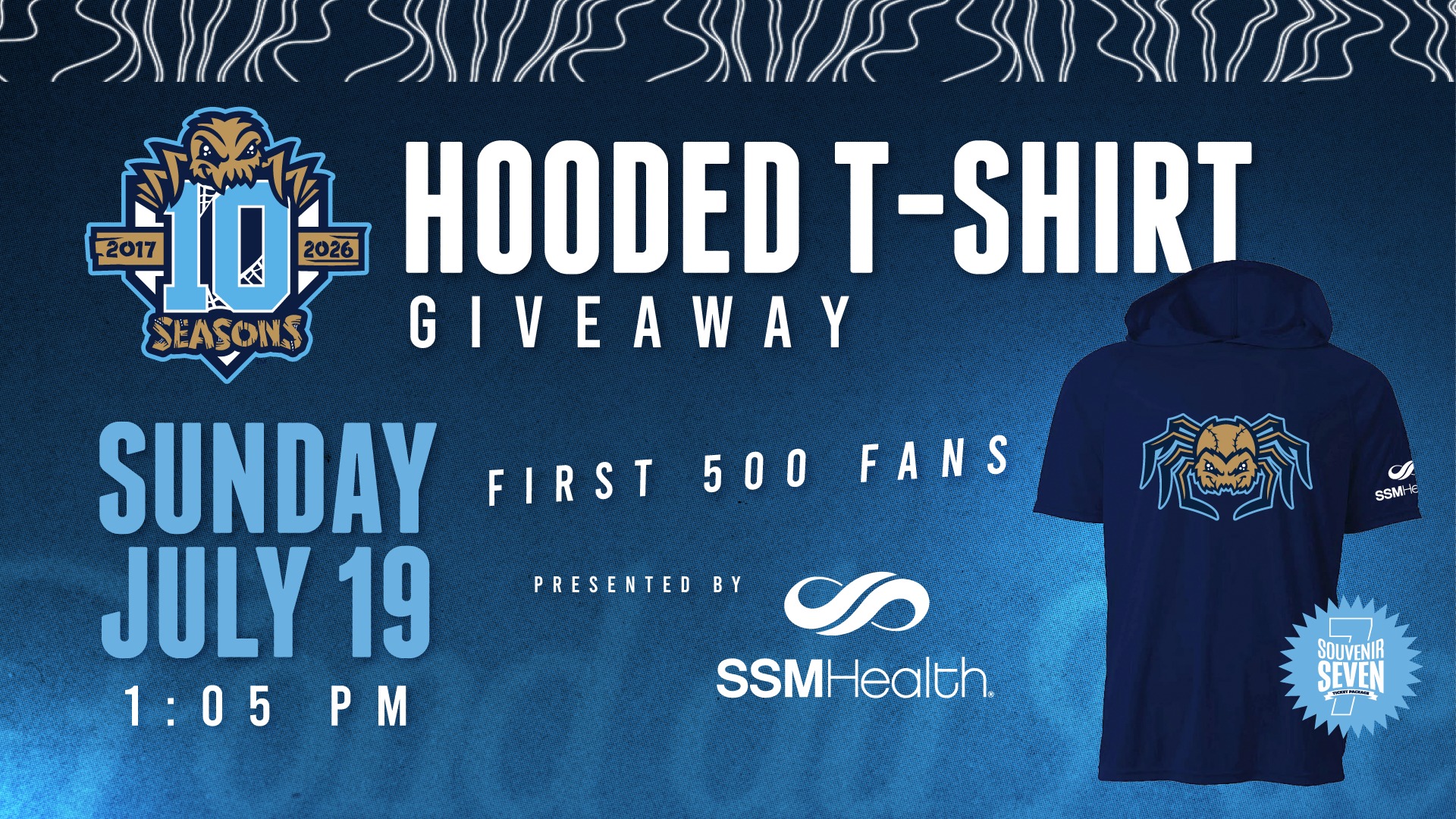 Did someone say Dock Spiders Hooded Tee Giveaway?! WE DID! The first 500 fans on Sunday, July 19th will get a Dock Spiders Hooded T-Shirt presented by SSM Health.