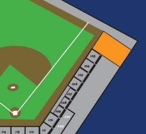Located on the 1st base side of the ballpark (shown in pink). Tables and chairs are located on the concourse in the Bud Light Party Patio.