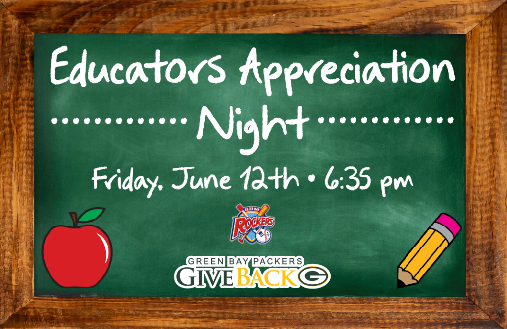 Each educator who fills out the form below will receive one complimentary ticket to Educator’s Appreciation Night on Friday, June 12th. Any additional family members, neighbors, or friends that you wish to have attend the game will receive discounted $6 tickets on this night, courtesy of Green Bay Packers Give Back.