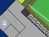 Located on the 3rd base side of the ballpark (shown in dark grey).