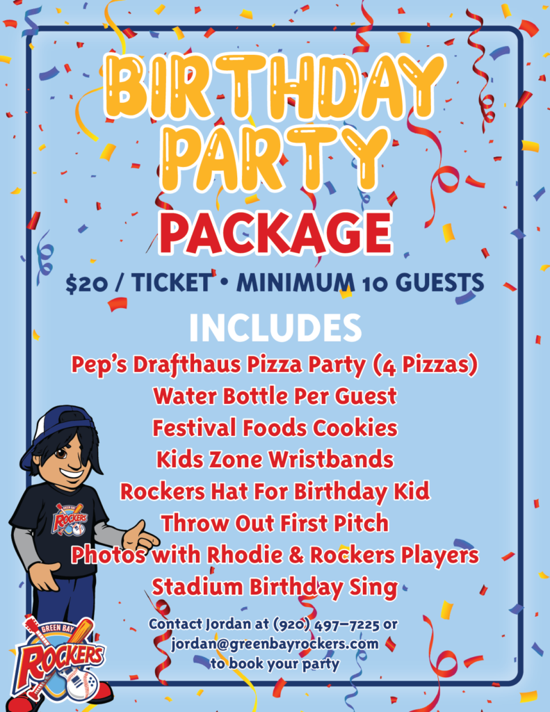 Give your rockstar the party of their summer! The Pep’s Drafthaus Birthday Package is all about putting them center stage for their special day, with them throwing out the first pitch and the whole stadium singing them Happy Birthday! When they’re taking a break from being star of the show, they can do some more partying in our all-you-can-jump inflatables. With all the partying, they can’t go hungry either. We also provide pizzas courtesy of Pep’s Drafthaus and Festival Foods frosted Rockers cookies. All this makes for one unforgettable night for the star in your life. 🤩