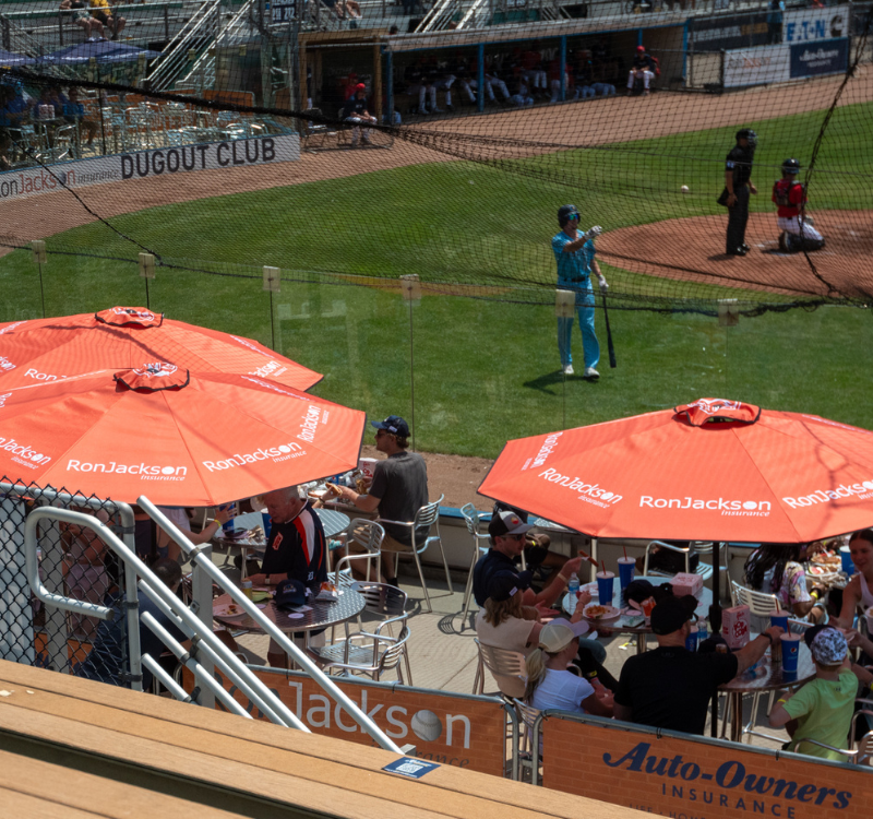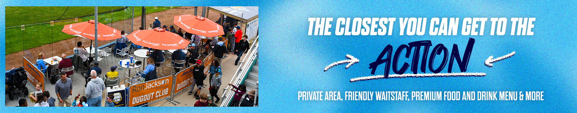 The Ron Jackson Insurance Dugout Club features seating right at field level in an area where guests can freely roam, connect, socialize and enjoy the experience.