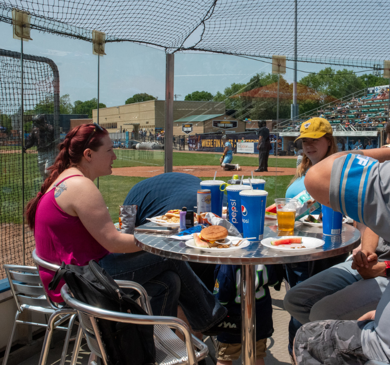 This area features high-top and outdoor table seating for 20-30 fans. You can book the Dugout Club and sit next to the first base dugout or the third base dugout.