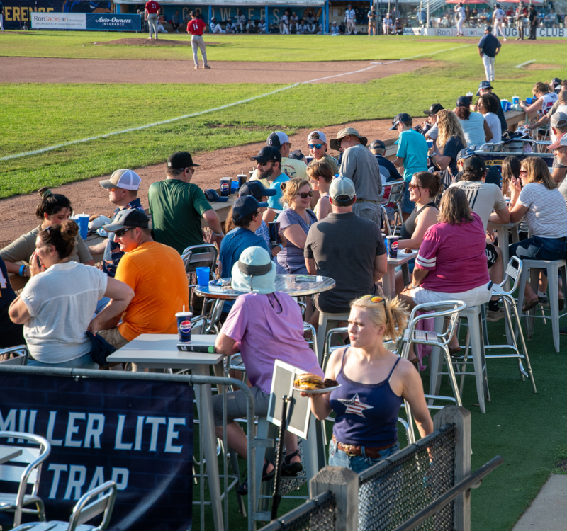 The Miller Lite Trap has five seating options including a fan deck, covered awning, bullpen fence line, home run alley and the porch.