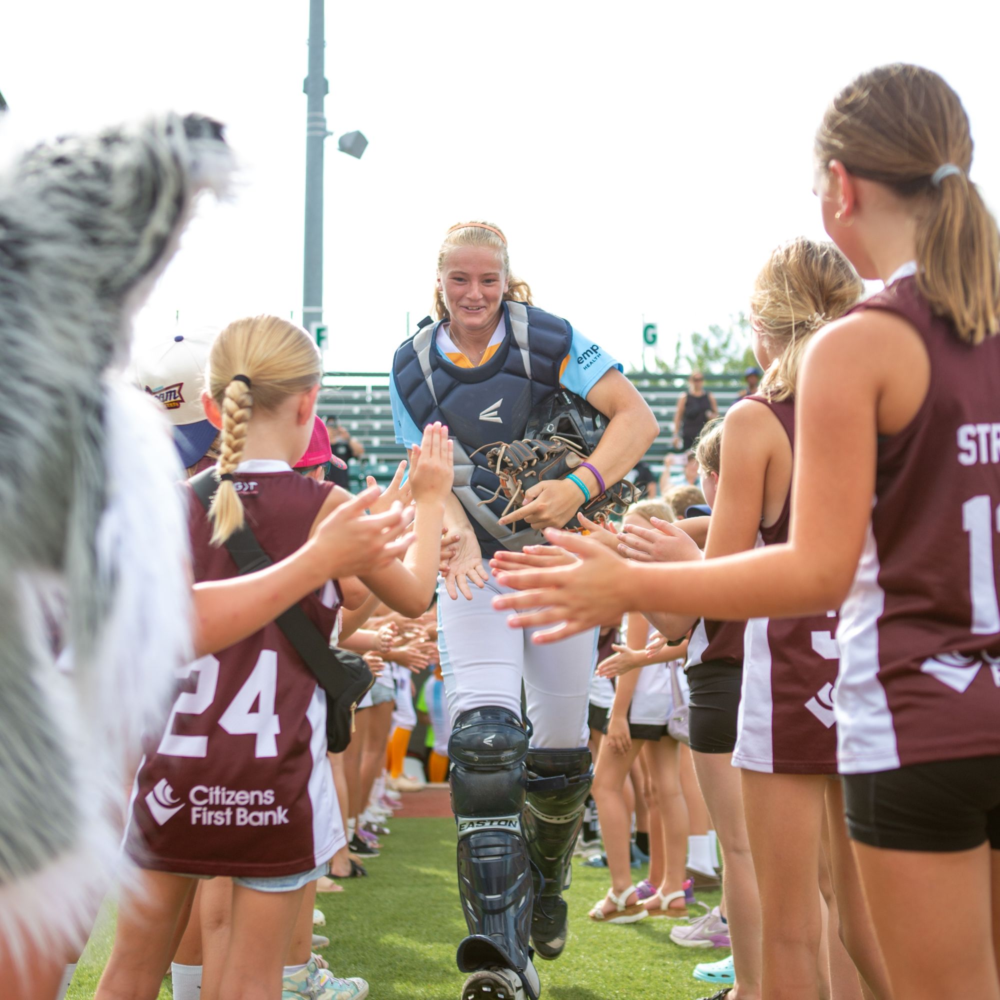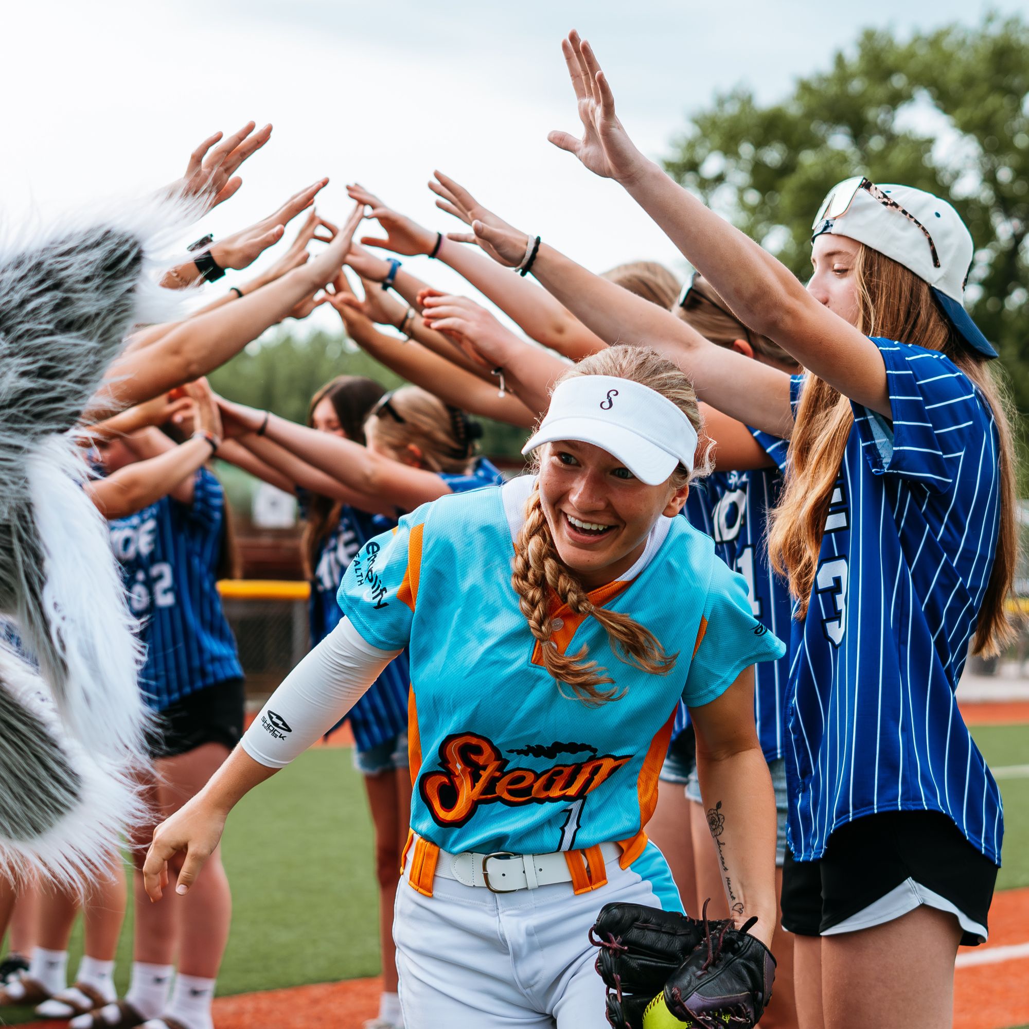 The High-5 Team will be brought onto the field from the 3rd Base gate and introduced over the PA System during the Pre-Game Show. The team will create a tunnel to give High 5’s to Steam players as they are being introduced.