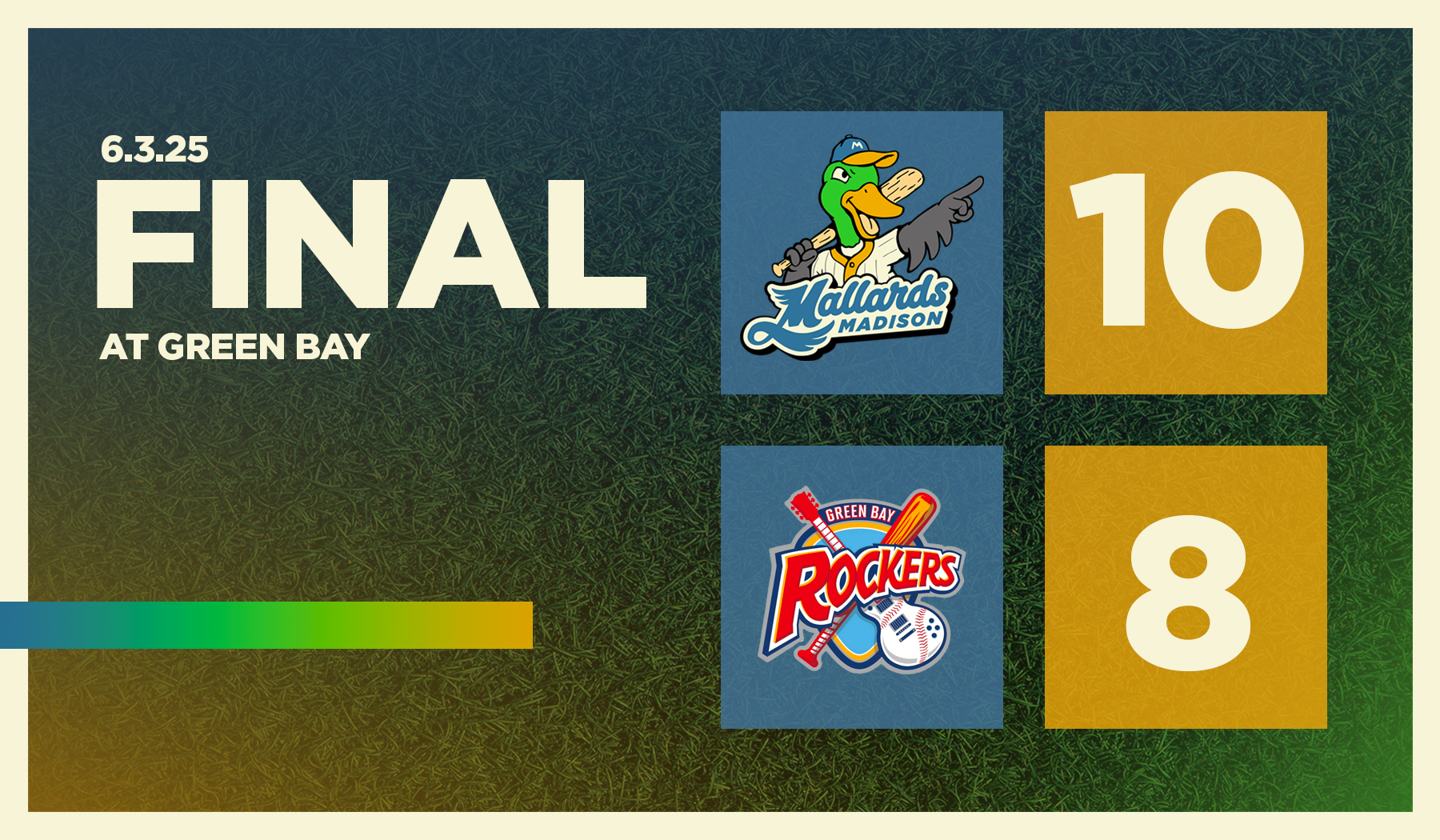 Ashwaubenon, WI - The Madison Mallards (5-2) outlasted the Green Bay Rockers (5-4) 10-8 in an exhilarating ten inning battle [...]