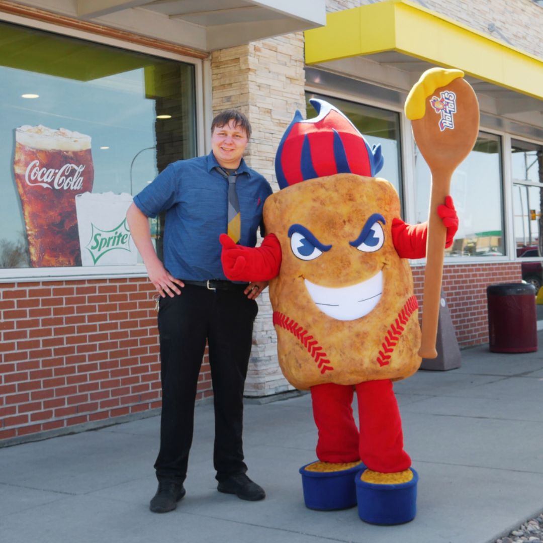 With his spoon bat in hand and pit vipers on, he’s ready to lead the Hot Tots. He loves meeting people and finds himself the happiest when he’s at the ballpark having fun with fans and watching the Tots cook up a victory.