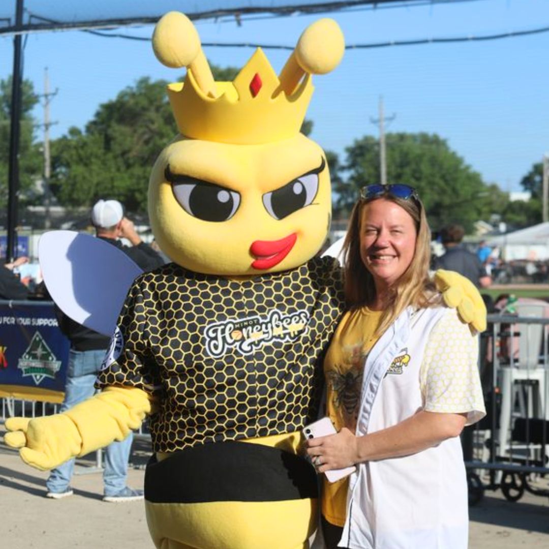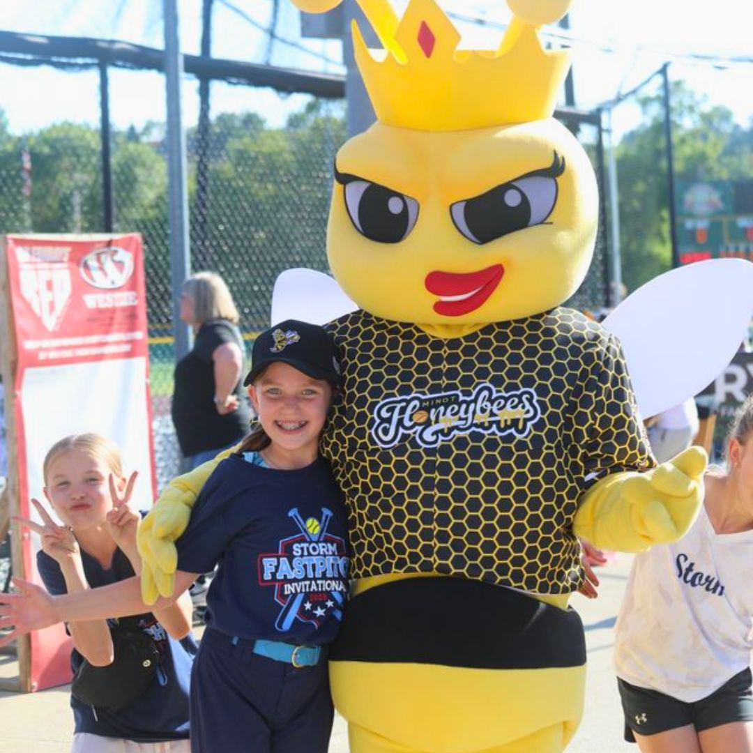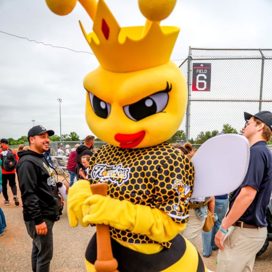 Phoebee is the buzzing heart and soul of the softball field — a spirited honeybee with a love for the game and a flair for fun! With her pearly white wings shimmering in the sun and a glittering crown resting proudly on her head, Phoebee brings a sweet mix of grace, grit, and golden energy to every game.