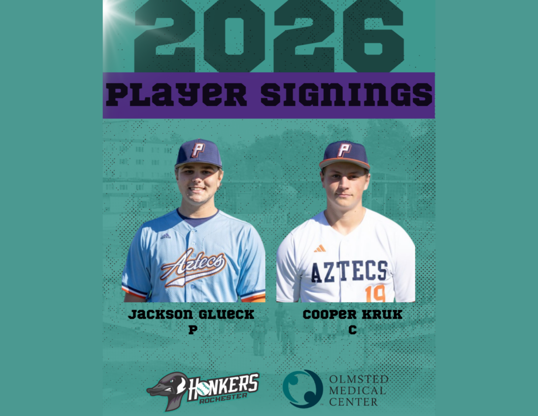 Together, Kruk and Glueck bring a gritty, hard-nosed Aztecs mentality that fits perfectly into the Honkers’ lineup. With just three months until the first pitch of the Rochester summer league season, the excitement continues to build.