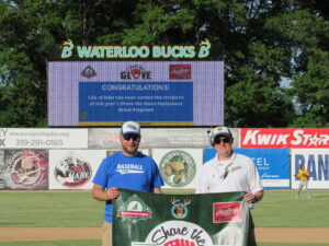 Waterloo, Iowa – The Waterloo Bucks have partnered with the Northwoods League Foundation to provide a set of team equipment from Rawlings to an area youth baseball team.  The Foundation’s grant, which is part of the “Share the Glove” initiative, is one of 26 grants to be awarded in each NWL community.