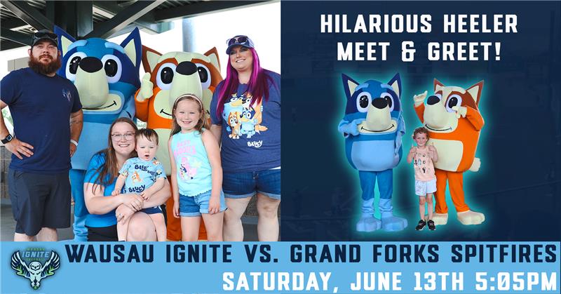 Saturday, June 13th vs. Grand Forks Spitfires – 5:05 PM First Pitch Hilarious Heeler Meet & Greet Get a ticket and a access to a special Meet & Greet with your favorite Heeler characters for just $15! Be sure to select a time to attend the meet and greet, located pregame in the Pepsi Tailgate Pavilion. Each time slot lasts for 30 minutes. |