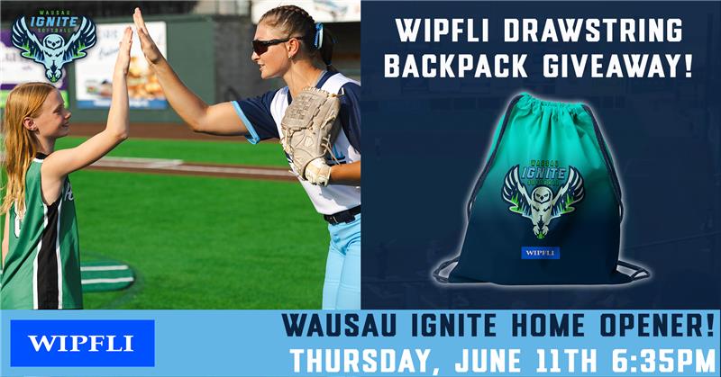 Opening Day 2026! Drawstring Backpack Giveaway – the first 250 fans through the gate will receive a Drawstring Backpack, presented by Wipfli. |