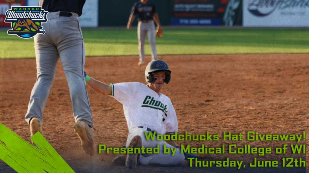 Woodchuck Hat Giveaway – presented by Medical College of Wisconsin DC Everest Youth Baseball Fundraiser Night Grand Slam Social Ticket Package Thirsty Thursday – Half Price Miller Lite through the 5th Inning |
