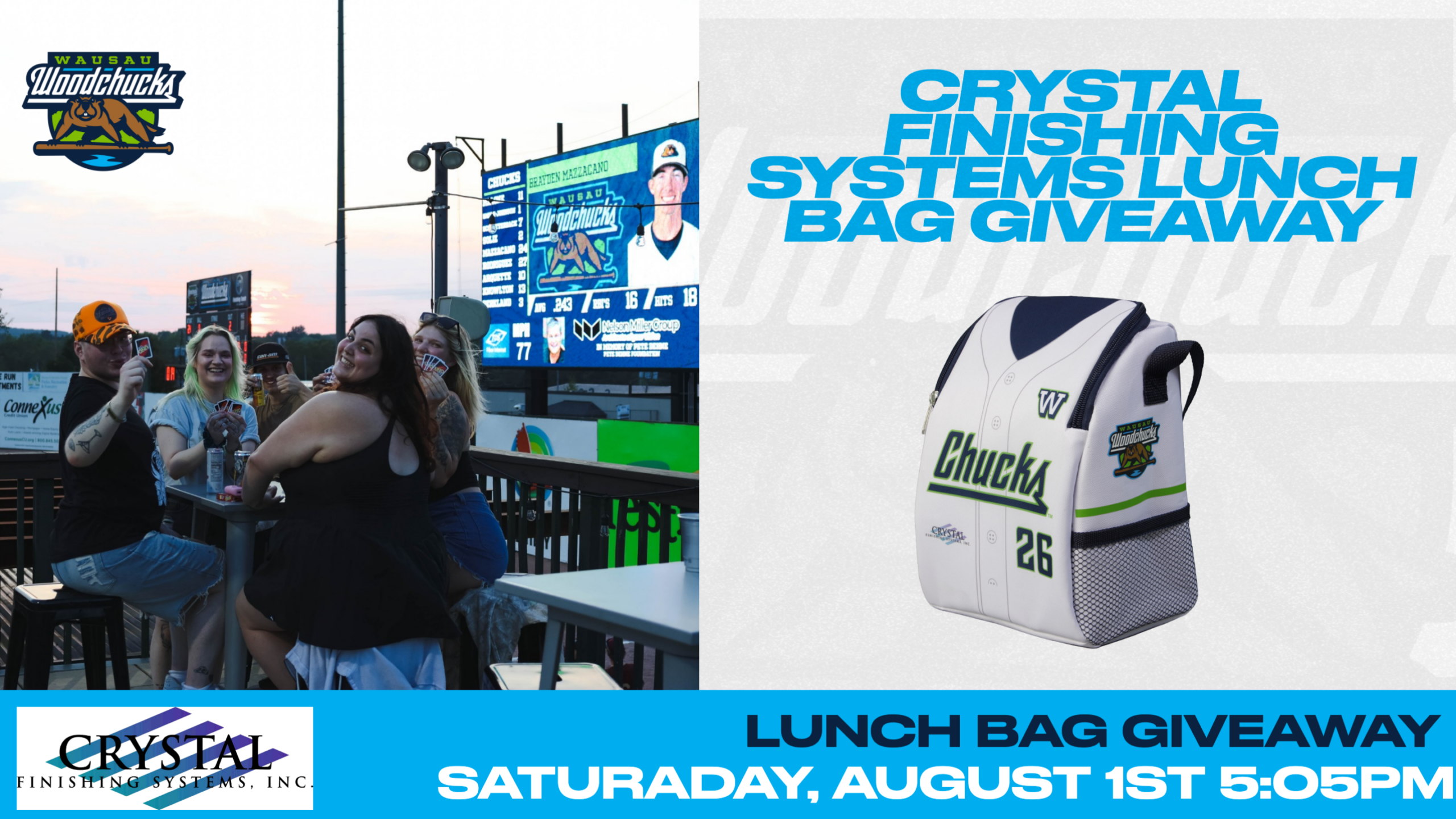 Crystal Finishing Systems Lunch Bag Giveaway: The first 500 fans will receive a Woodchucks Lunch Cooler Bag, courtesy of Crystal Finishing Systems. Buy now to guarantee your lunch cooler bag for $15!
