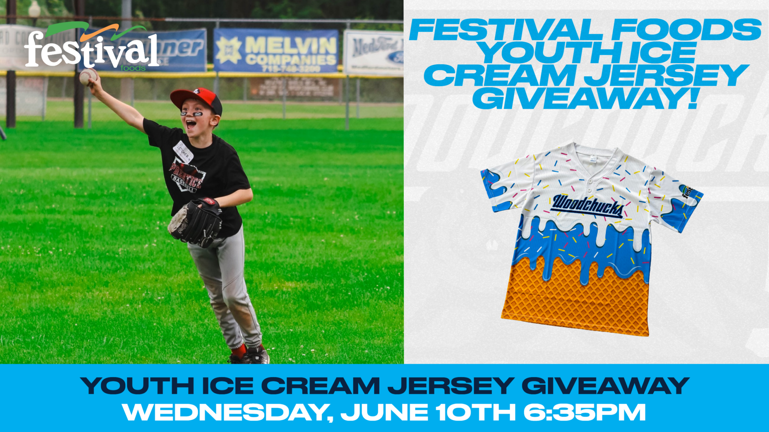Festival Foods Youth Ice Cream Jersey Giveaway: The first 500 kids (under 18) will receive a free Woodchucks Ice Cream Jersey, presented by Festival Foods!