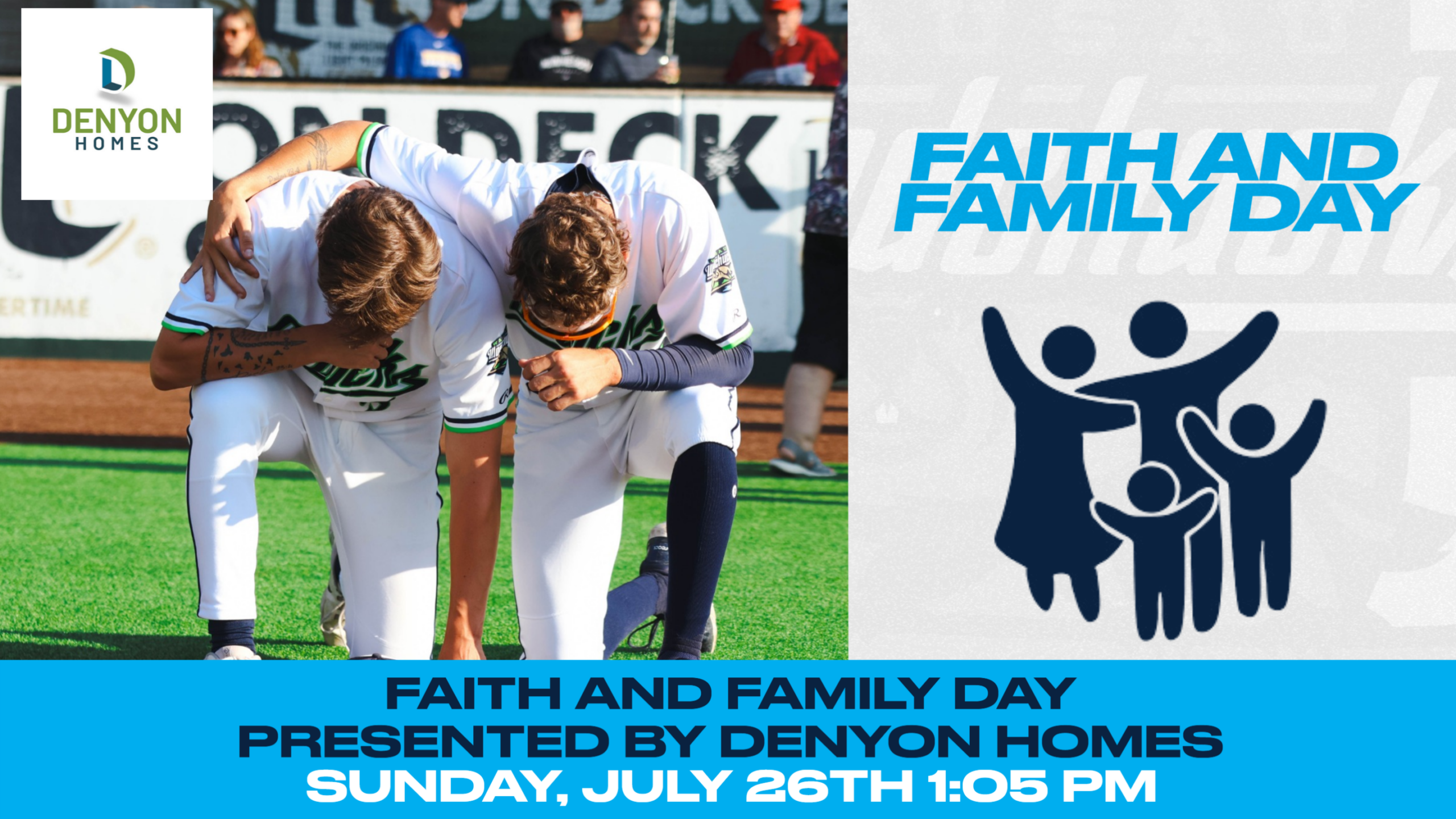 Faith and Family Night: Fun for the whole family with $8 Bleacher Seats or $25 Leinie’s Party Area Tickets (non-alcohol). Presented by Denyon Homes