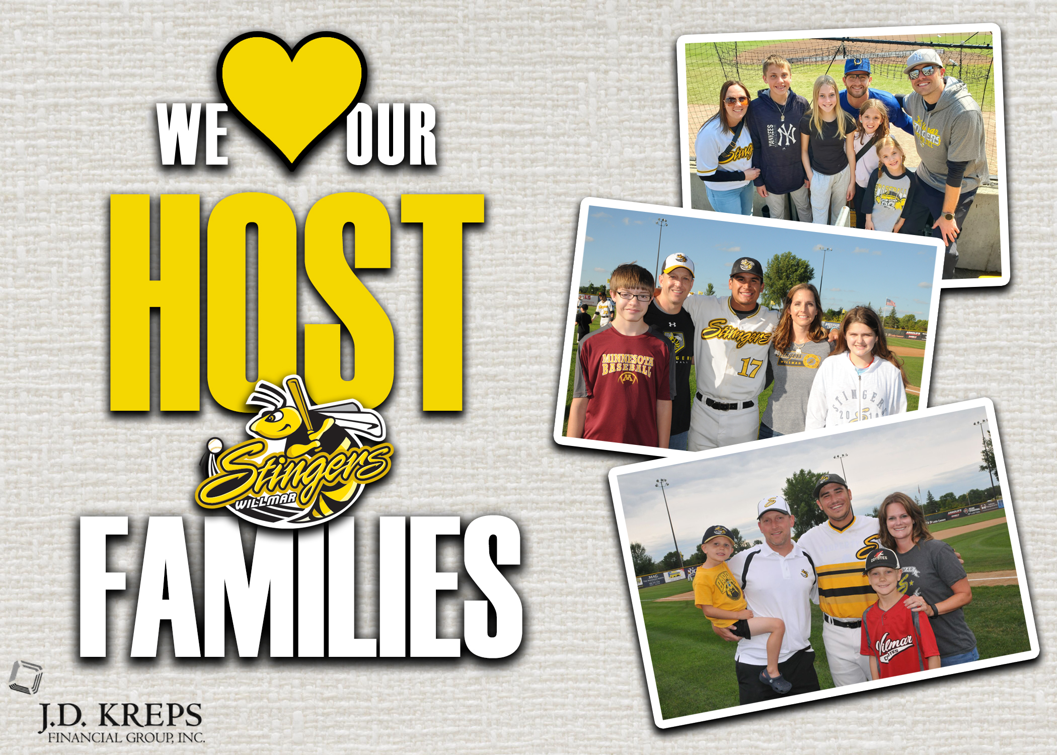 Willmar, Minn. – As the we look to the new season the Willmar Stingers would like to thank all of our host families: past, present, and future for their commitment. Thank you for taking these players into their house, giving them a bed, picking them up after long road trips, and giving them food to eat; really making them feel like part of the family. Host families are the backbone of this league and we don’t say this lightly but we have the best host families.