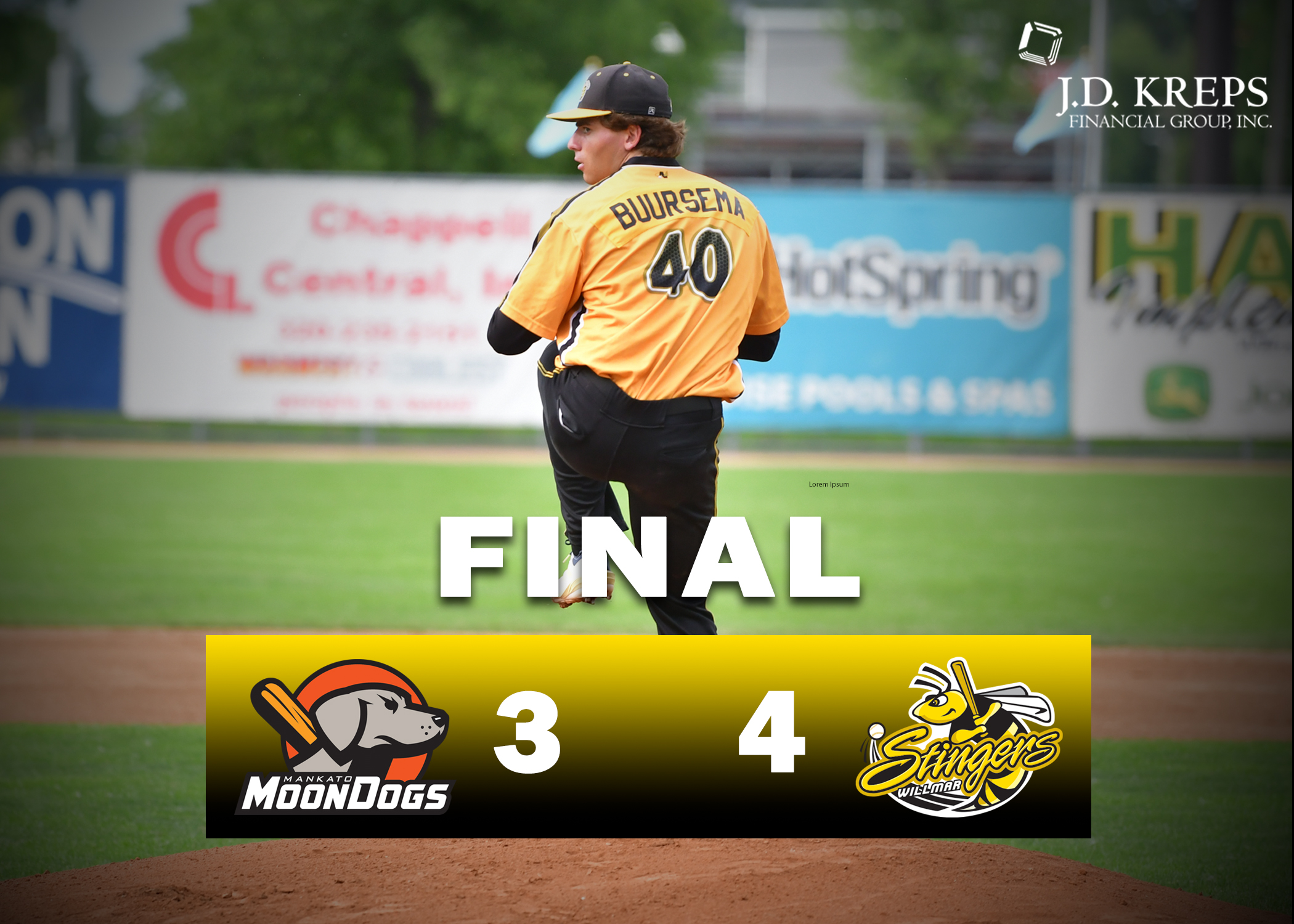 Mankato, MN -The Stingers(31-27) beat the Mankato Moondogs(29-29) on the road 4-3. Centerfielder Cody Nitowitz started off the scoring with [...]