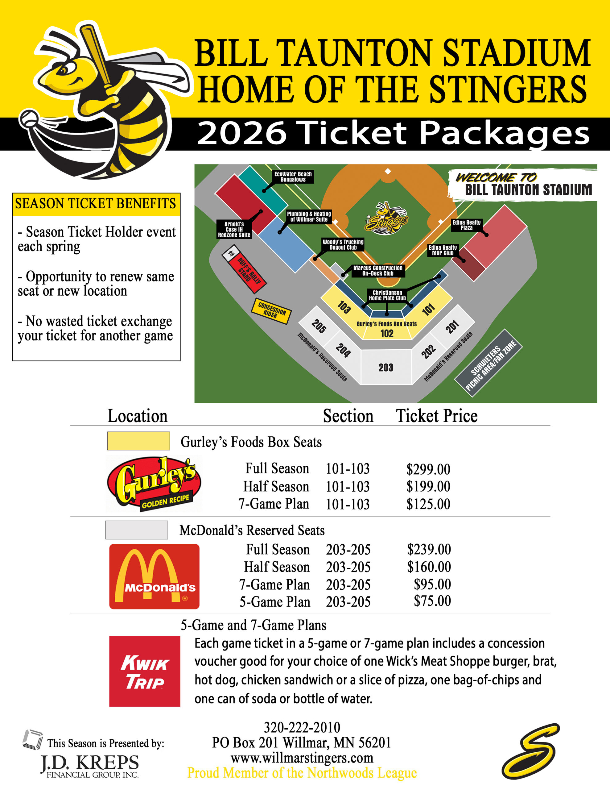 Below is a form you can fill out to inquire about any of our season ticket plans. After you hit the submit button, the Stingers will be in contact with you to answer any questions you have and to get your seat reserved for the 2026 season at Bill Taunton Stadium!